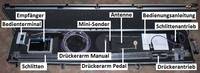 The set up of the key hander is simple and can be done in max. 10 minutes. Due to the long manual arm, multi-manual playing systems can also be reached. For the use on a pedal piano, only the Tastenhansel has to be moved downwards on the frame and the shorter pusher arm has to be inserted. Further modifications are not necessary and thus allow a quick change between manual and pedal use. All keyboard keys of different types can be operated with only one device. Due to the radio transmitter, you as the tuner determine the working tempo and have no dependencies.