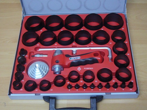 • Ring punching die set D= 2 - 60 mm 34 combinable punching die inserts like set 2 - 50mm and additionally 52, 54, 56, 58, 60 mm 1 special holder, 1 punching die holder and circle cutter, everything in case