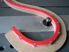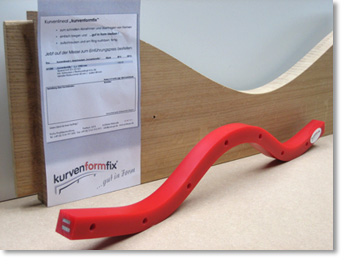 The red original Kurvenlinfix manages the time-consuming production of a template within a very short time. Exact milling templates are the result! Even the elaborate programming of a CNC machine is often more expensive than the purchase of the Kurvenlinfix. But also unique forms directly at the workpiece are possible in the freest forms. The Kurvenlinfix is then the template. The flexible stop rail is exact and, thanks to its smooth surface, contributes to an immediate optimum milling result on the stop ring of the table milling machine or the thrust ball bearing of the hand router. Expensive and time-consuming reworking is no longer necessary.