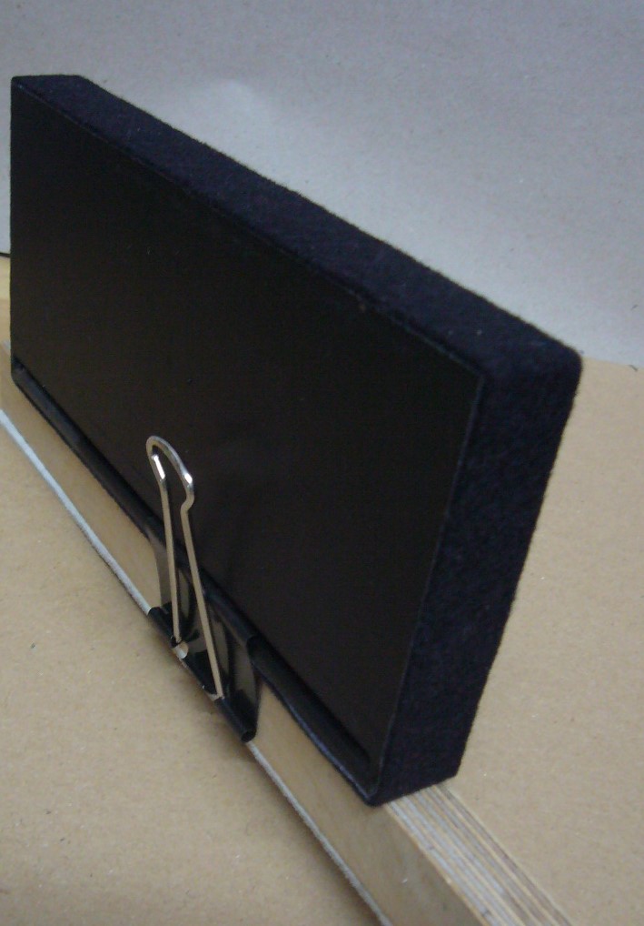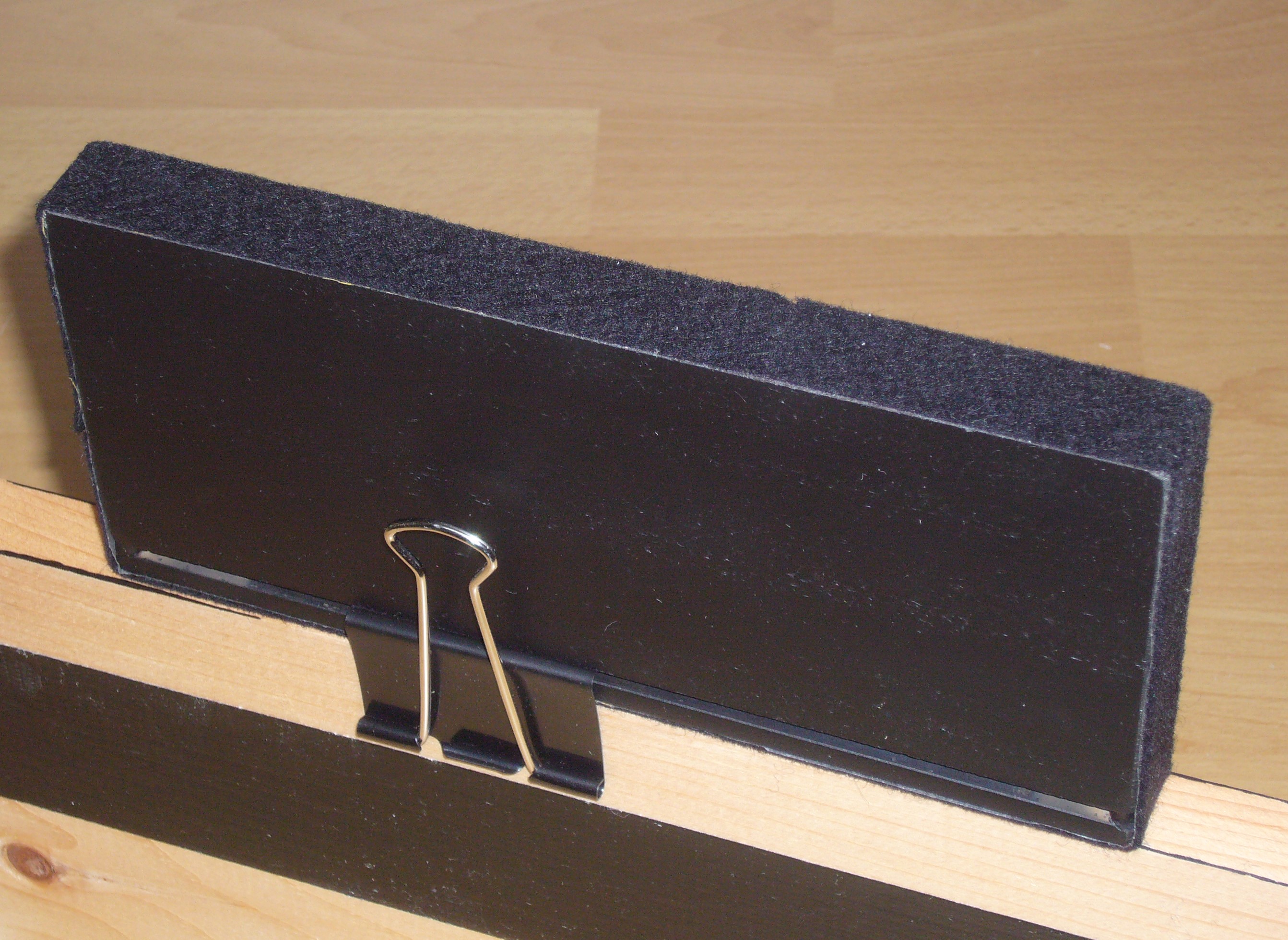 The 90 mm high thin iron weight is secured to the side of the pedal keys with an attached sliding retaining clip. The clamp width is variable up to max. 25 mm due to the different key widths.