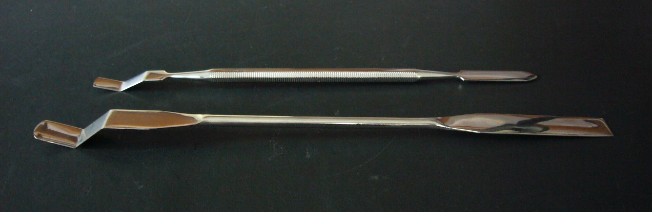 Labium elevator large, made of chrome-plated steel with a shovel-like end and a flat end