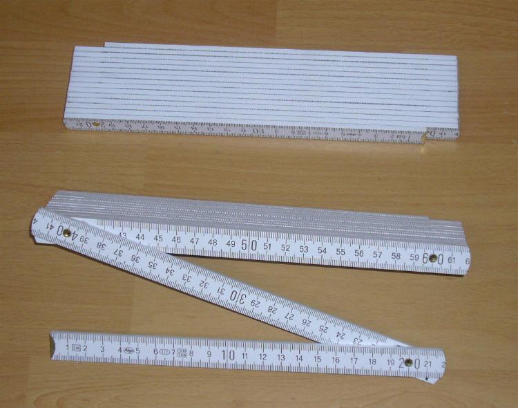 In pipe organ building, such meter staves can be used well as folding length staves. Possibly own length markings can be attached in addition to the millimeter scale itself.