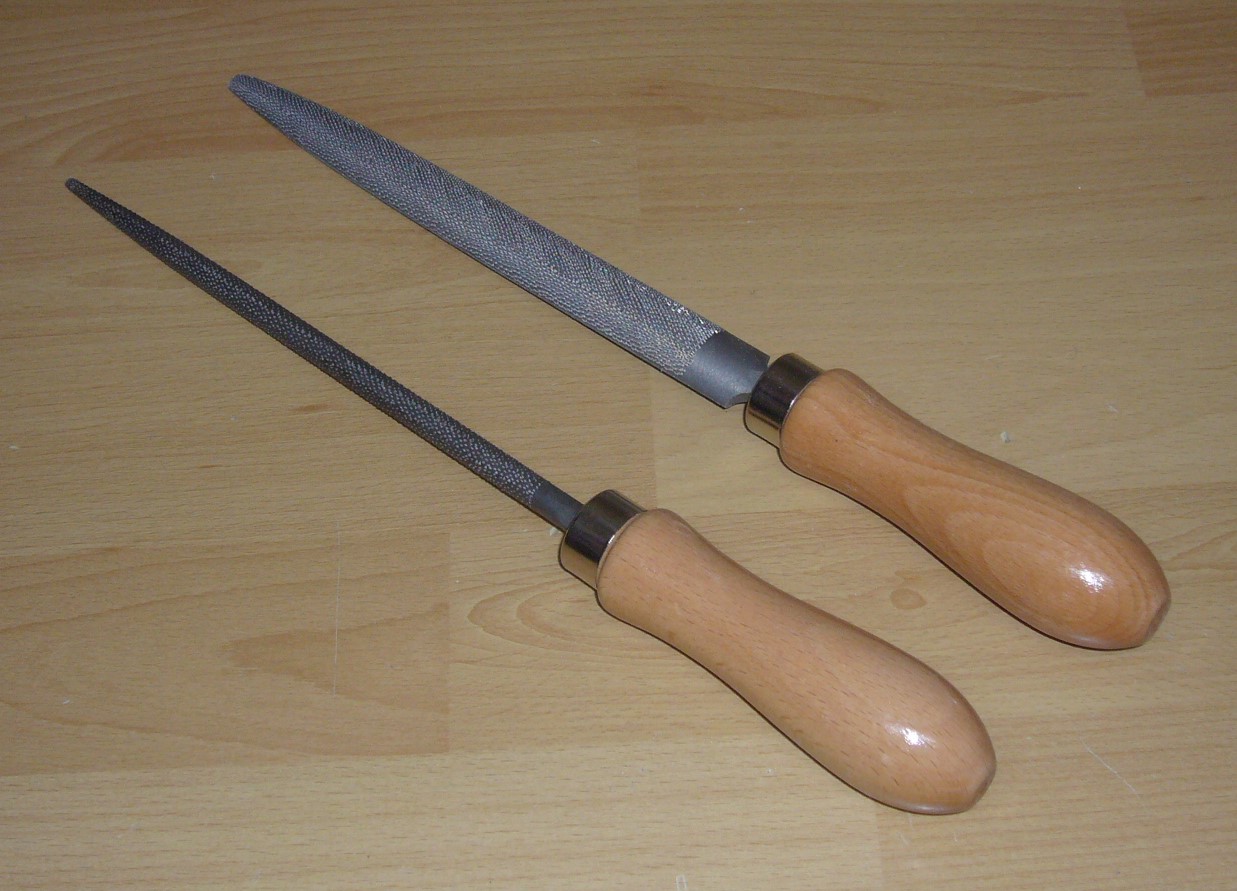 Hand rasp half round pointed with finest hand cut no. 6 in 200x20 mm with lacquer. Wooden handle