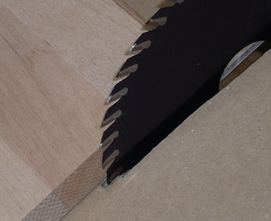 Thin saw blades are desirable where the saw cut is used, for example, as a holding slot for other materials or where as little material as possible is to be used. In organ building, the very thin saw cuts are used for holding tuning or intoblades on wooden pipes or wherever as little high-quality wood as possible is to be consumed.