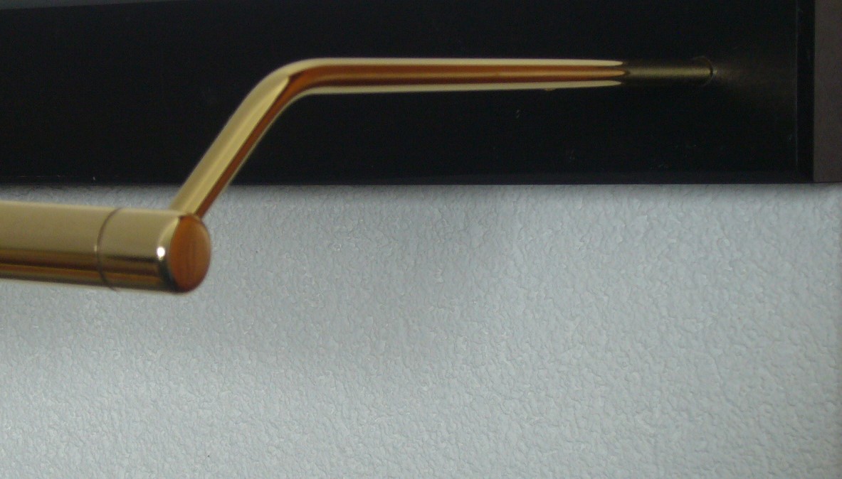L'optique "coudée" pour montage indépendant est disponible en finition laiton poli et laqué incolore et en nickel mat. Le tube de fixation en forme d'arc permet une saillie d'environ 26 cm. En cas de montage direct derrière le pupitre, cela donne un bon éclairage du pupitre.