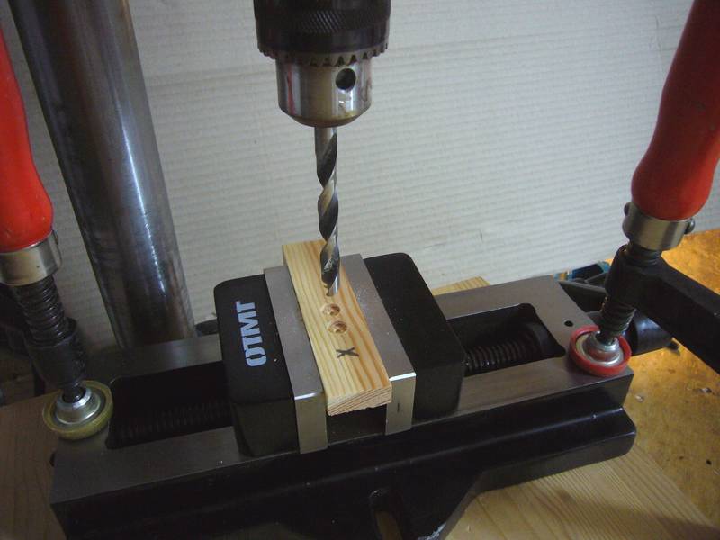 Longueur totale sans manivelle env. 260 mm. Poids env. 7 kg. Fixation sur la table métallique de la perceuse à colonne ou, au moyen de serre-joints, sur le support de table allongé en bois utilisé dans la facture d'orgues.