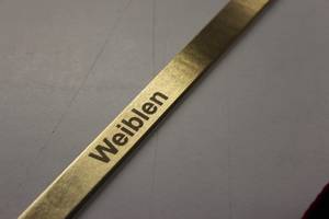 Pour l'attribution ou comme publicité, nous pouvons vous proposer le marquage au laser ou à la fraiseuse de gravure. A partir de 5 pièces de fer à voix de différentes tailles. Le prix est intéressant. Soit nous utilisons la police standard "Arial", soit vous nous indiquez une police habituelle. Vous trouverez le prix par pièce à partir de 5 pièces et une longueur de mot jusqu'à 60 mm dans la liste ci-dessous. Des polices plus longues sont possibles sur demande.