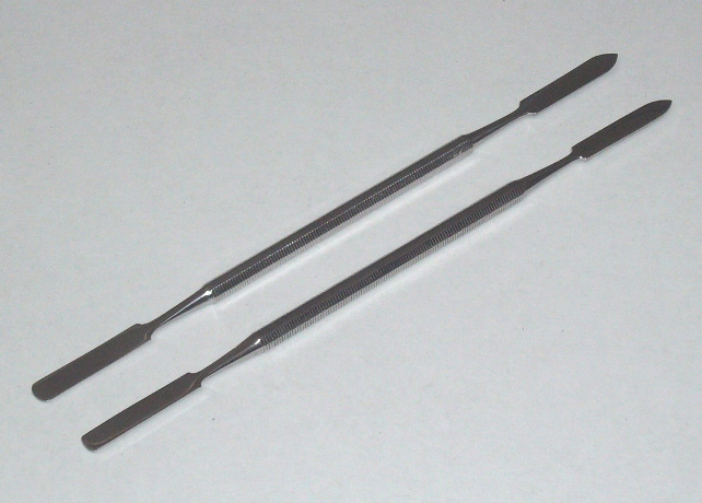 Paire de spatules chromées stables, pointues et fines avec des bords arrondis. Conviennent pour différents travaux de réglage sur les pipes métalliques.
