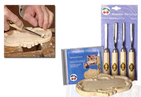 Avec 4 outils de sculpture de cerises de haute qualité, une ébauche en bois préparée "plaque de porte" et un DVD d'instructions, c'est aussi un cadeau idéal pour les passionnés de bois et les sculpteurs en herbe.