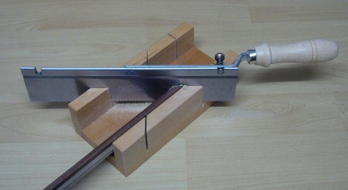 Outil auxiliaire pour scier des baguettes à 90 degrés ou en onglet à 45 degrés.