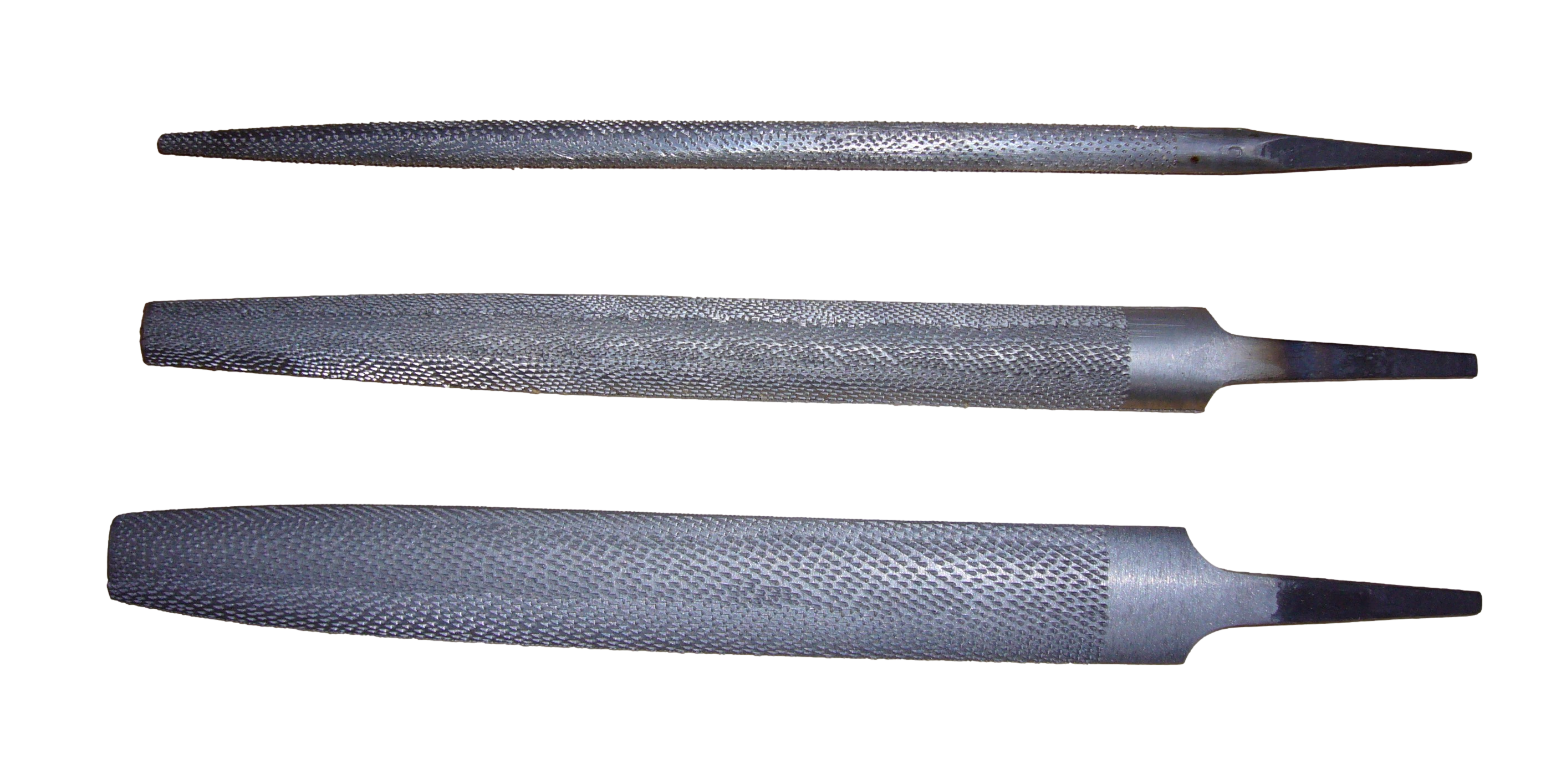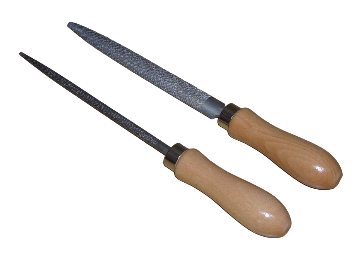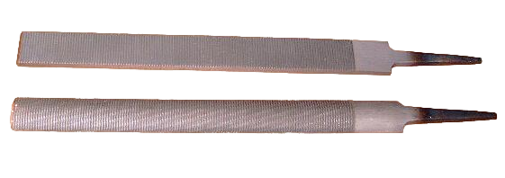 Metallfeilen mit Kreuzhieb in flacher oder runder Form. Die runde Form ist mit groben Feilenhieb ...