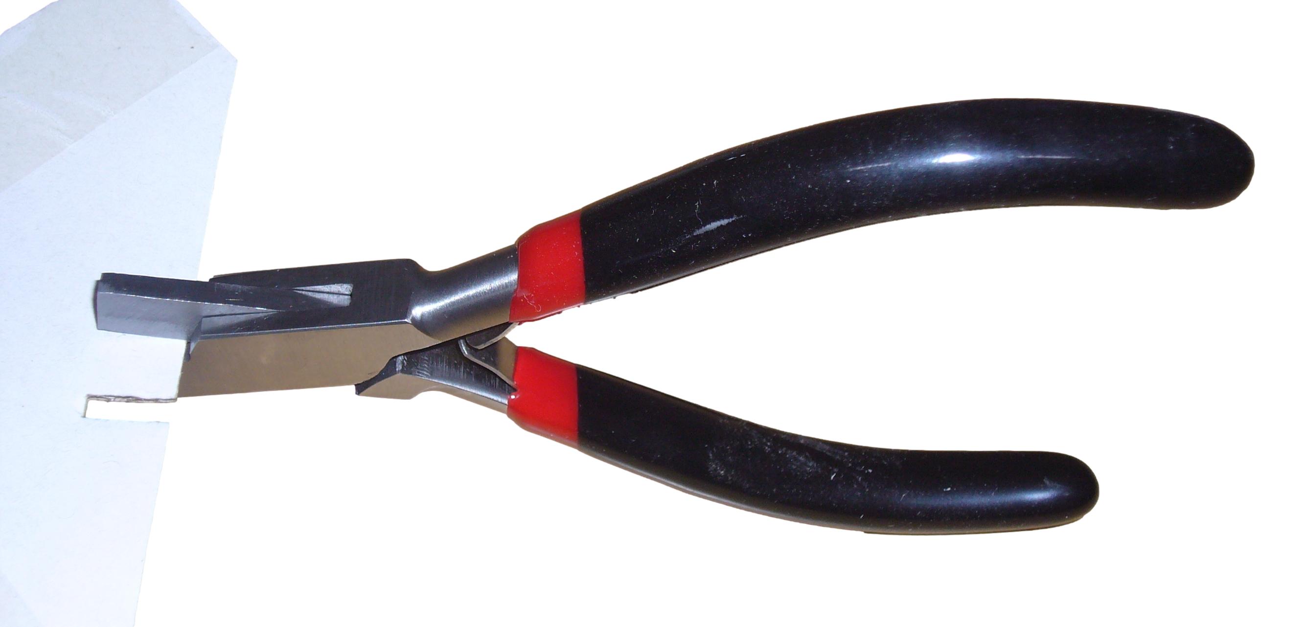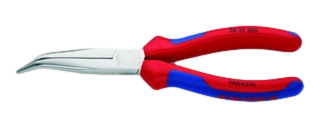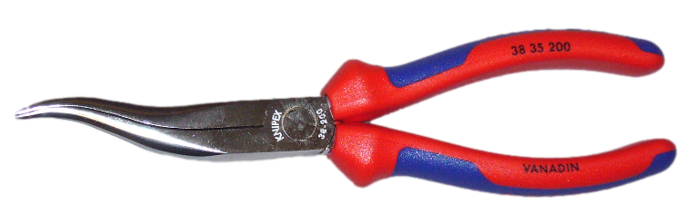Wie Mechanikerspitzzange mit langen dünnen Backen, die in der vorderen Hälfte abgekröpft sind....