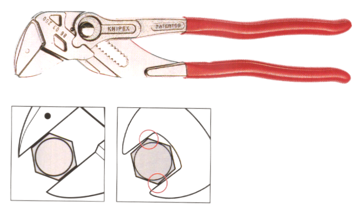 Sinnvoll kombinierte Zange und Gabelschlüssel. Mit glatten Backeninnenflächen auf jede Mutterng...