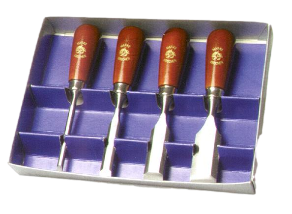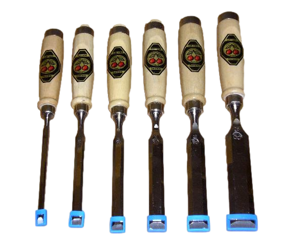 6 Stück hochwertige Kirschen Stechbeitel in den Breiten 6, 10, 12, 16, 20, 26 mm. Die Stechbe...