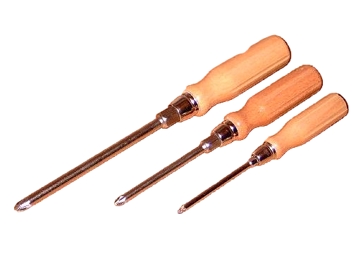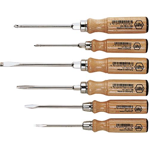 6tlg. Schraubendrehersatz mit lackiertem Holzheft für Schlitz- und Kreuzschlitzschrauben.