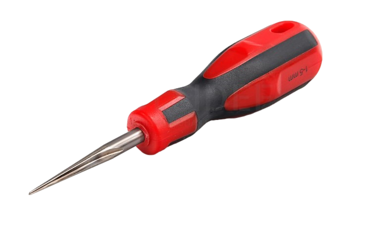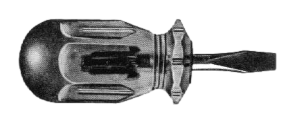 Sehr kurzer Schraubendreher für Schlitzschrauben mit kurzem Kunststoffheft....