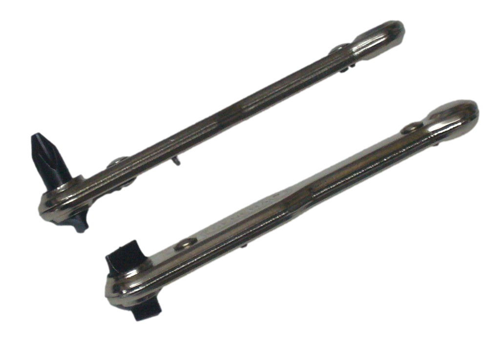 Metallgriff mit eingebauter Ratsche und durchgesteckter Schraubenklinge. Am Griff umschaltbar fü...