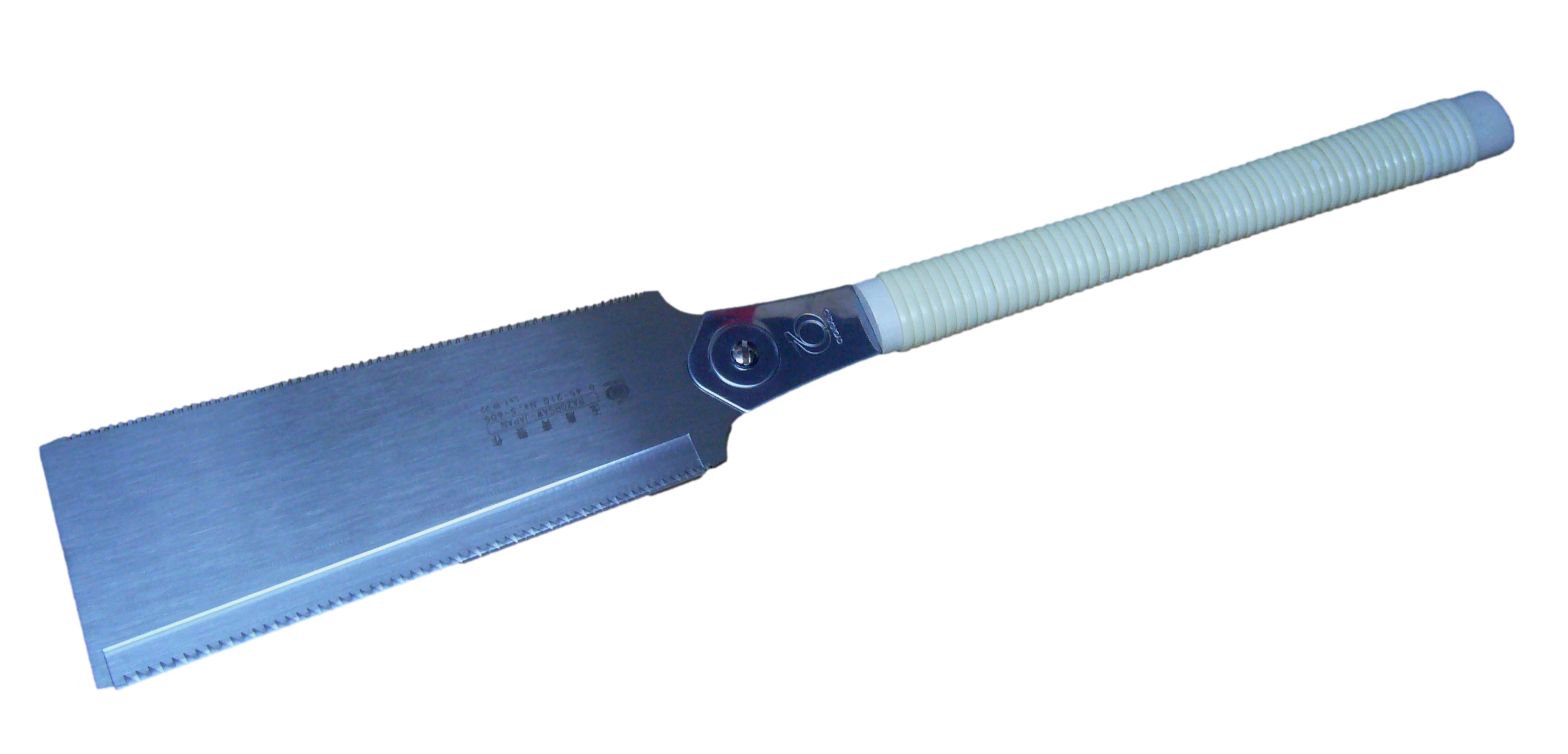 Standard-Feinsäge mit gekröpftem umlegbarem Griff. So ist es möglich, daß sowohl rechts als a...