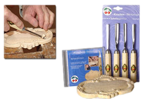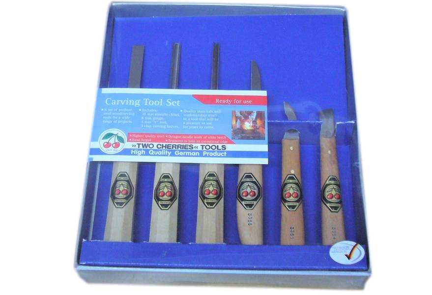 Kirschen 6tlg. Satz Kerbschnitzbeitel und Messer mit Holzheft. ...
