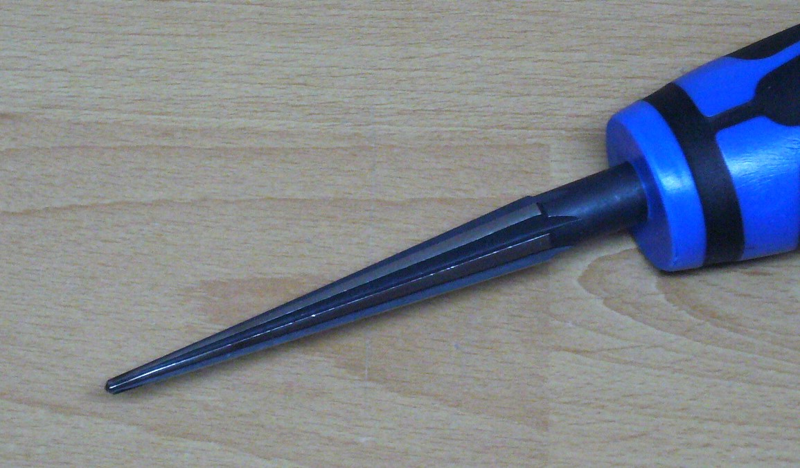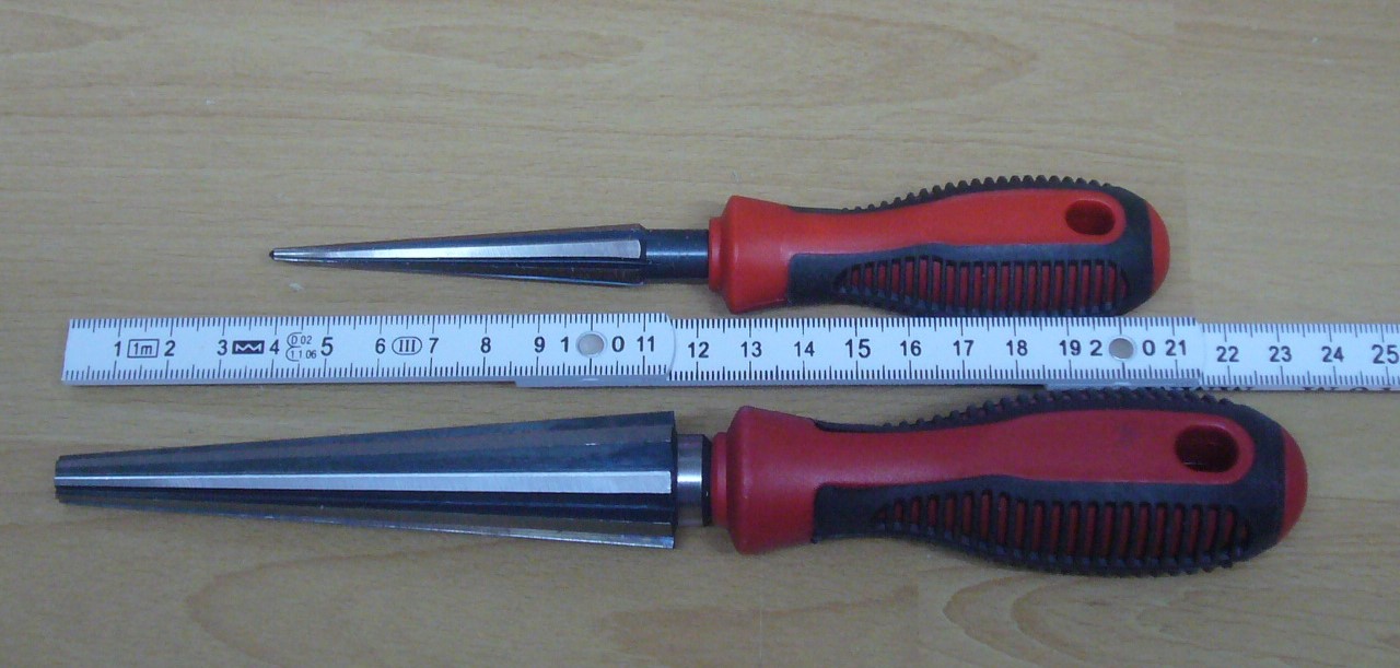 Reibahlen zum schnellen Erweitern von Fußlöchern an Metallpfeifen oder Bohrungen im Holz, Blech oder Kunststoffgehäusen. Lieferbar in versch. Größen und Qualitäten. Bei der Größe 3 - 12 mm mit blauem Griff handelt es sich um eine einfache Ausführung für weiche Materialien.