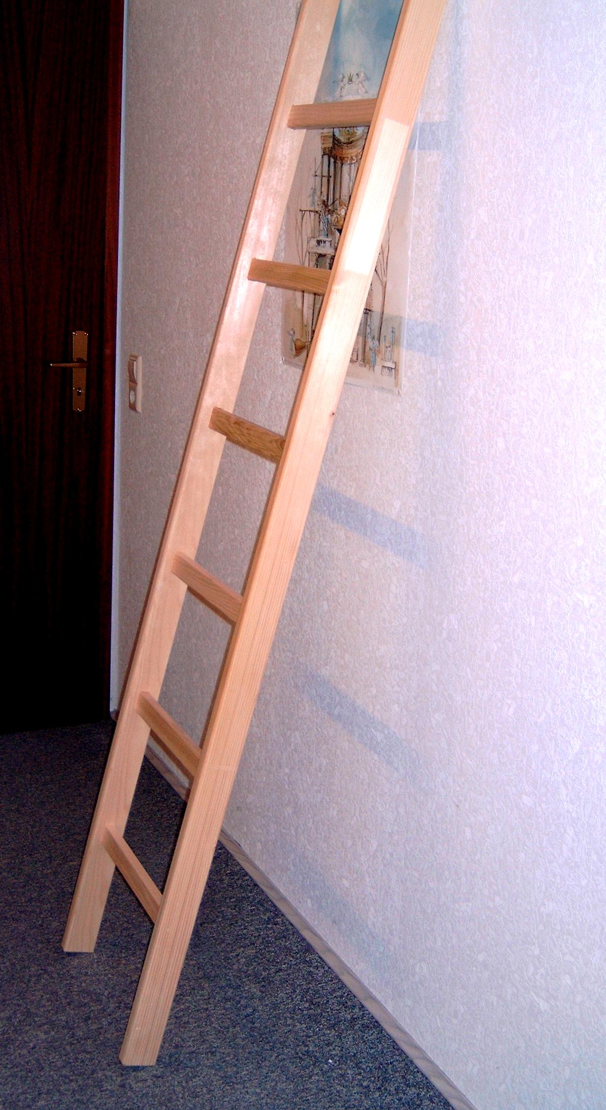 Holzleiter mit Holme aus astfreiem keilverzinktem Kiefernholz 65 x 25 mm und Sprossen aus Esche 43 x 20 mm. Außenbreite 42 cm. Sprossen verdeckt verzapt mit den Holmen, sauber geschliffen und einzeln verpackt. Das unbehandelte Holz eignet sich für verschiedene Oberflächenbehandlungen.