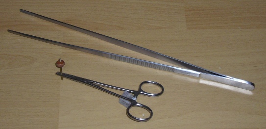 1 x  30 cm lange Pinzette mit flachen geriffelten Backen aus Edelstahl