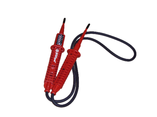 Sicherheitsspannungsprüfer für 12 - 400 V mit zwei Messstiften und Verbindungsgummikabel. Anzei...