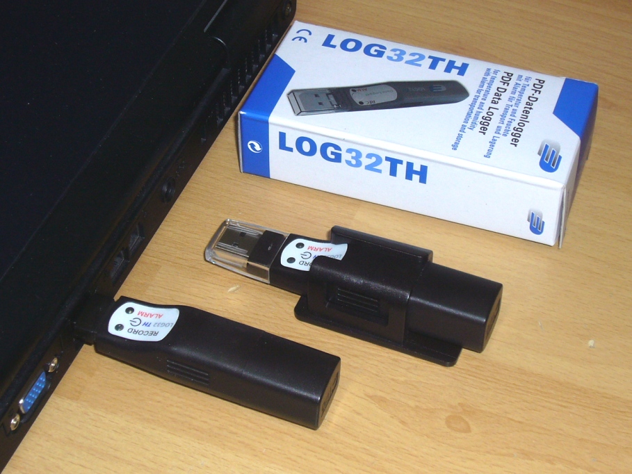 Das Gerät ist mit einer starken Batterie mit 3,6 V 1/2AA bestückt. Haltbarkeit je nach Messintervalle und Anschlußdauer an PC 1 - 3 Jahre. Gespeicherte Daten bleiben bei Stromausfall erhalten.