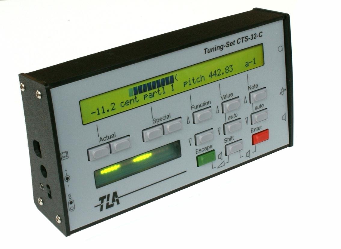 Das neue CTS 32 C verfügt jetzt zusätzlich über eine eingebaute USB-Schnittstelle, Anzeige der Centsveränderung über den angeschlossenen Thermosensor, Anzeige von 16tel Halbtonschritten für das Stimmen von Glockenspielen, Mithörton kann durch Drücken der E-Taste in der vorgewählten Lautstärke zugeschaltet werden, die Cents der historischen Temperaturen können direkt im Display abgelesen werden und weitere Bedienungsvereinfachungen.