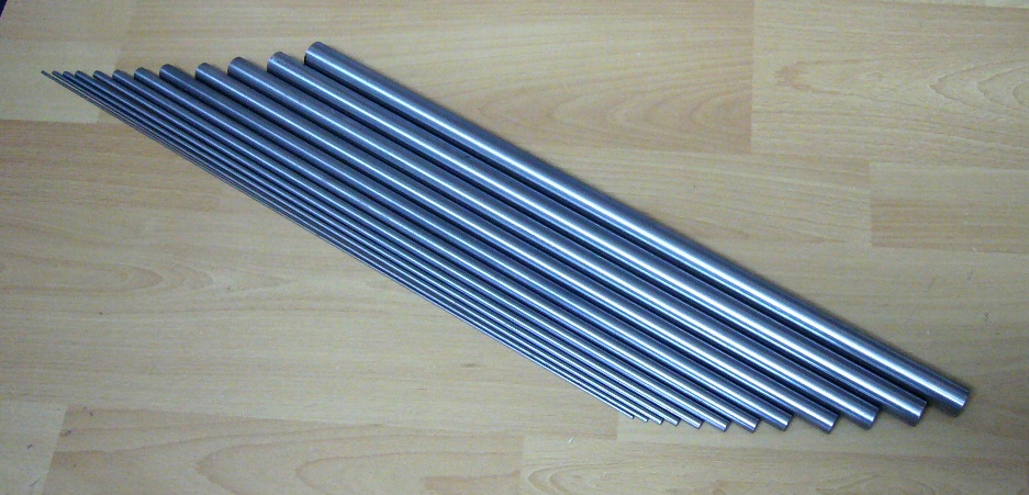 Die fein geschliffenen Stahlstangen aus Wälzlagerstahl mit der Kurzbezeichnung 100Cr6 haben einen kleinen Chromanteil und sind ungefähr doppelt so hart wie Baustahl. Mit Schmirgelleinen können diese bei Bedarf noch abgezogen werden und die Endkanten bearbeitet werden.